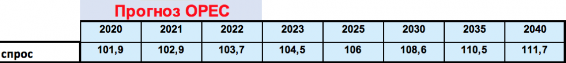 Прогноз ОПЕК среднего мирового спроса (в млн баррелей в день)