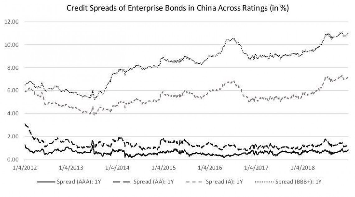 1. Корпоративные облигации занимают около 25% рынка. Остальная часть госы и муниципальные компании. В финансовом секторе почти все компании государственные, и составляют около 18% рынка. 2. Общий объем дефолтнувшего капитала в облигациях составляет около 0,2%, или около 200 млрд юаней, что очень мало. 3. Локальные рейтинговые агентства не умеют адекватно оценивать компании, поэтому большая часть компаний получает рейтинги от ААА до АА- (99% общего капитала), BBB и ниже рейтинги крайне редки. Основная причина таких высоких рейтингов заключается в малой истории дефолтов. Фактически первый произошел в 2014 году. Однако даже с появлением истории дефолтов за 5 лет, картина рейтингов поменялась незначительно. За это время дефолт объявили 94 компании по двум сотням выпусков. Понятие кросс-дефолт у них встречается редко.